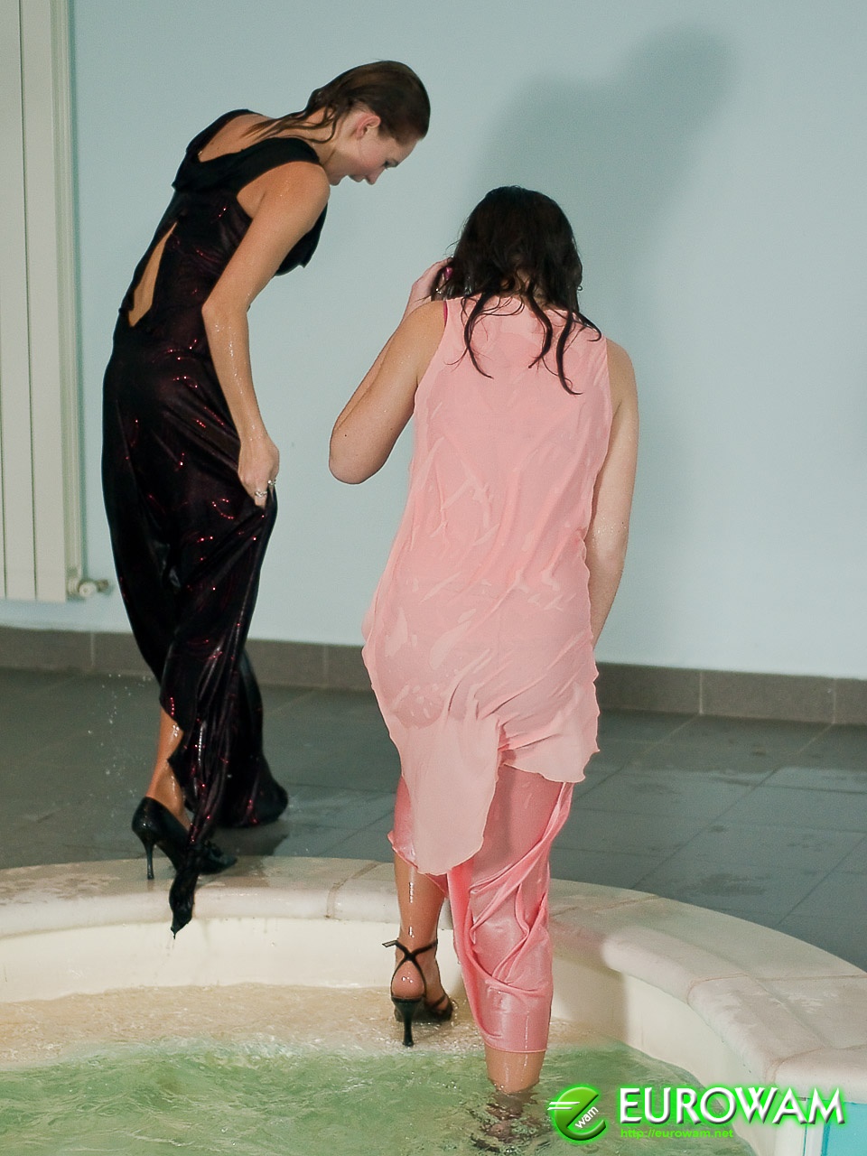 Another 4 ladies get into the pool in this part. All are wearing evening gowns, and all of them are having a lot of fun swimming in fancy evening outfits.