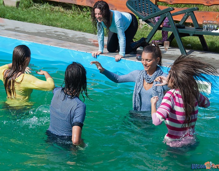 There are a lot of things that we did in the past year since EuroWAM.net went online. Yet we never did a pool party so we felt it was time to do one! ;) So we called lots of girls from those who worked with us throughout the year (2009), asked them to bring their best evening outfits, ordered a lot of champagne, and of course we made sure that there was some good music for the ladies. For an "outsider," the look was just as normal for a fancy party, with lots of pretty girls, drinks, and fun. BUT for us who like the look of an evening gown soaked wet, this party was far more then a normal party - it was a wetlook party, the first pool party we organized! Hopefully you guys will enjoy seeing 13 pretty girls getting wet in the pool and dancing with their clothes soaked on them. Enjoy ;)