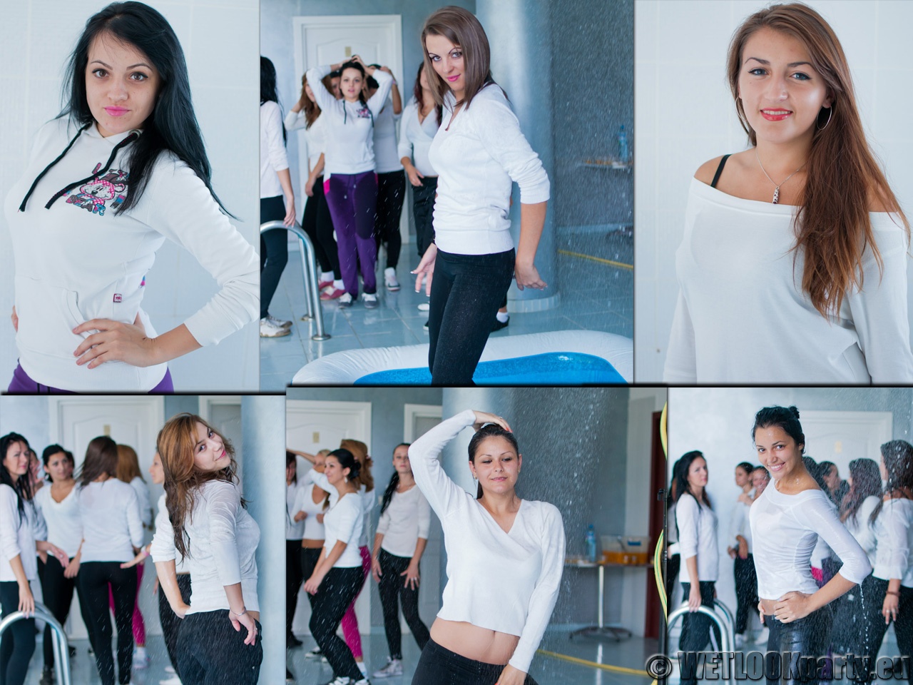 nice idea, but why is every girl waring a bra - the white shirts would look much nicer without bras