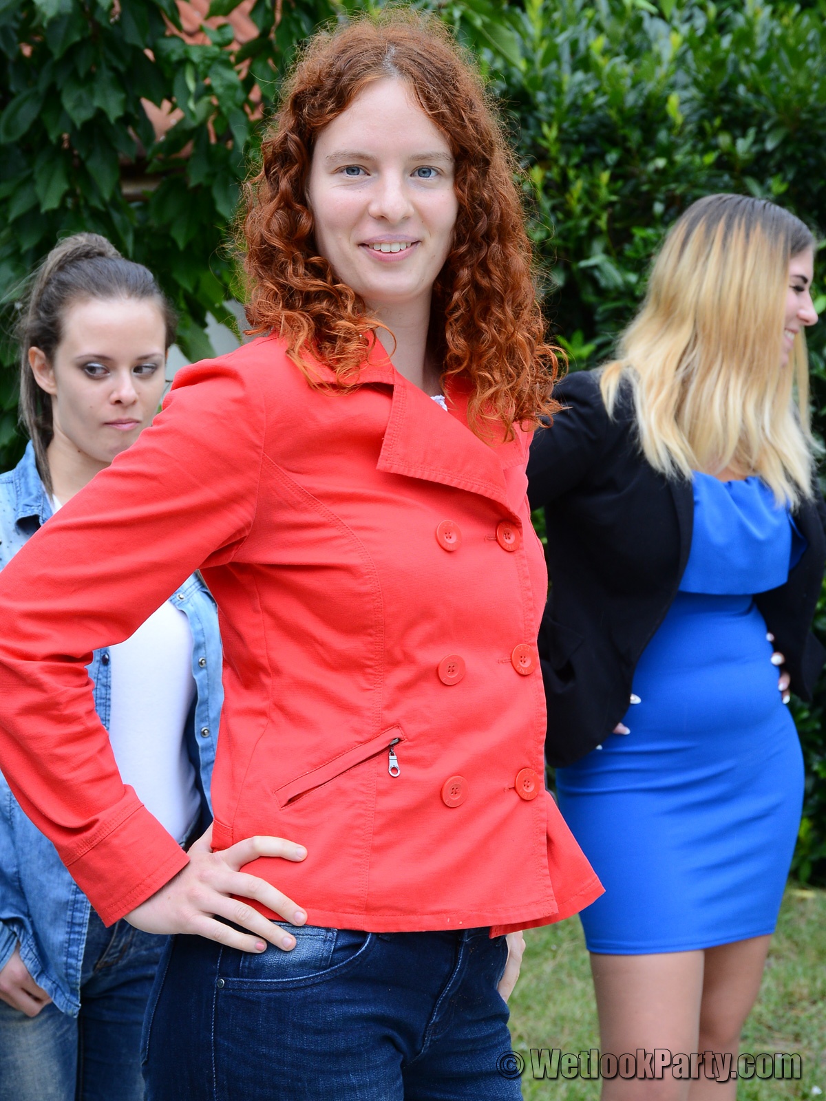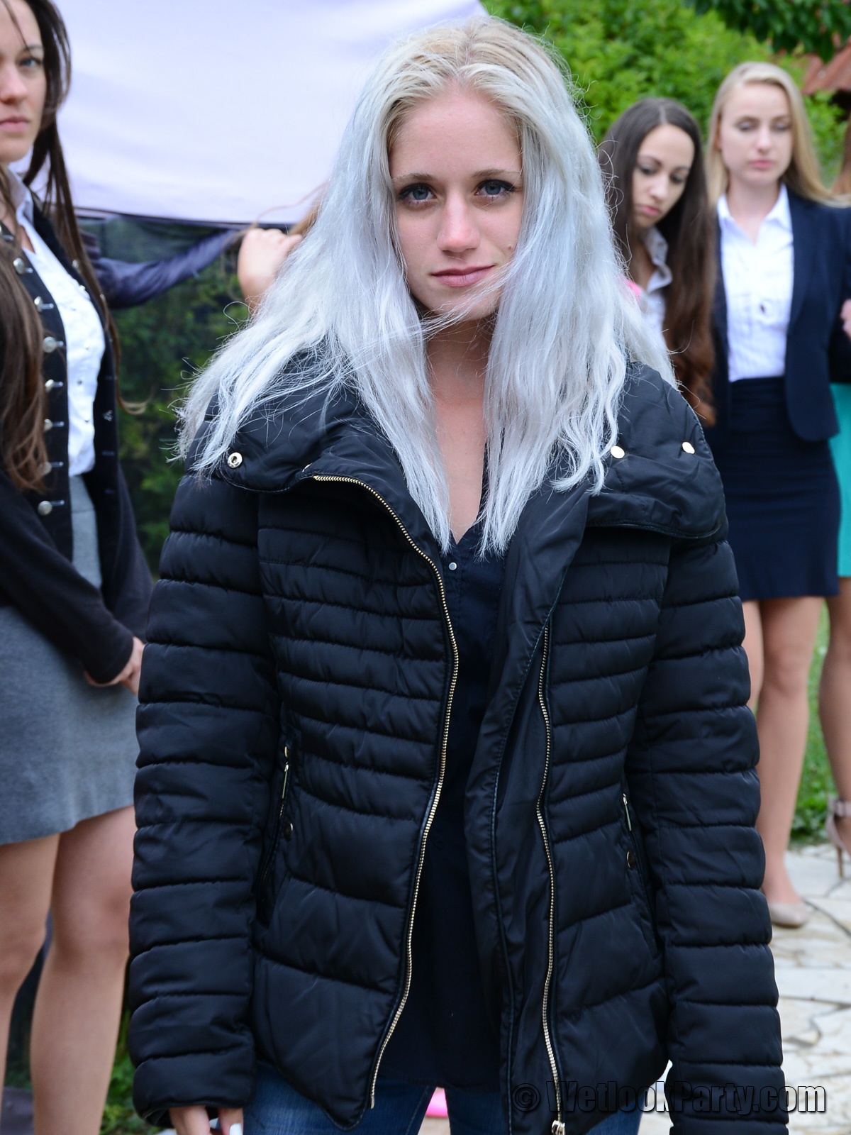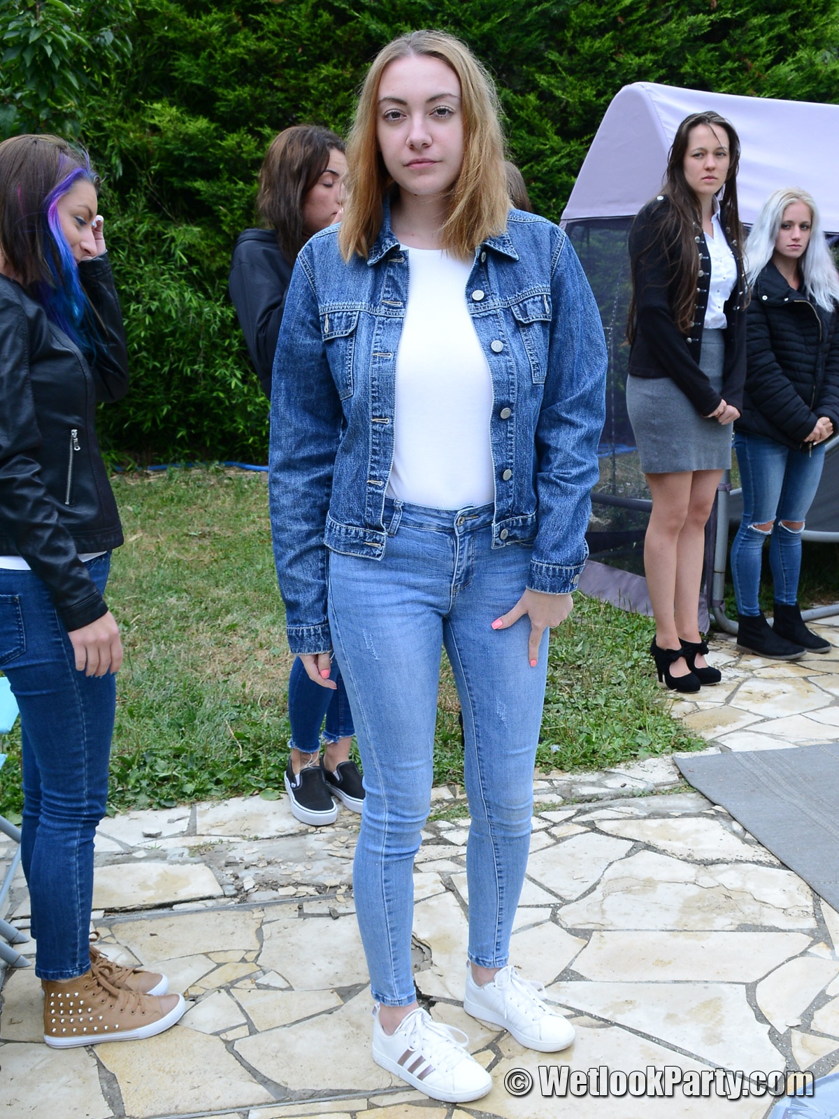 So, what we have here... 19 girls, all dressed up in their own clothes, all of them could choose the clothes they want to get wet into and all of them will have fun in this one.