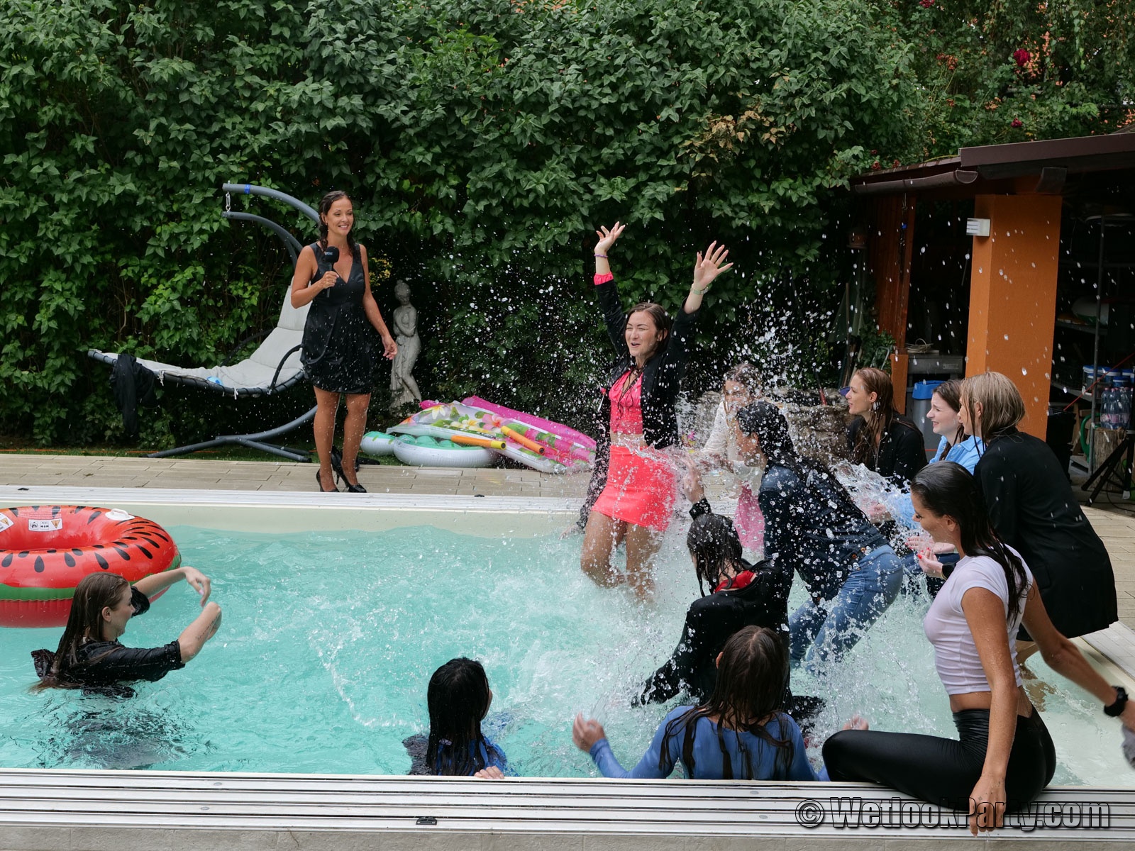 The new wetlook party T1153 is fantastic and I like it better than the party productions before. The new concept is great. I particularly like that the girls are fully clothed for a particularly long time. By that I mean that they wear the jackets with their outfits for a long time in the water. In the previous productions, the girls always took their jackets off too quickly. But what I particularly like in section T1153c8 is that the girls jump into the pool. There should be a lot more scenes like that. I also hope that you produced a party with the girls in which they all wear business outfits.