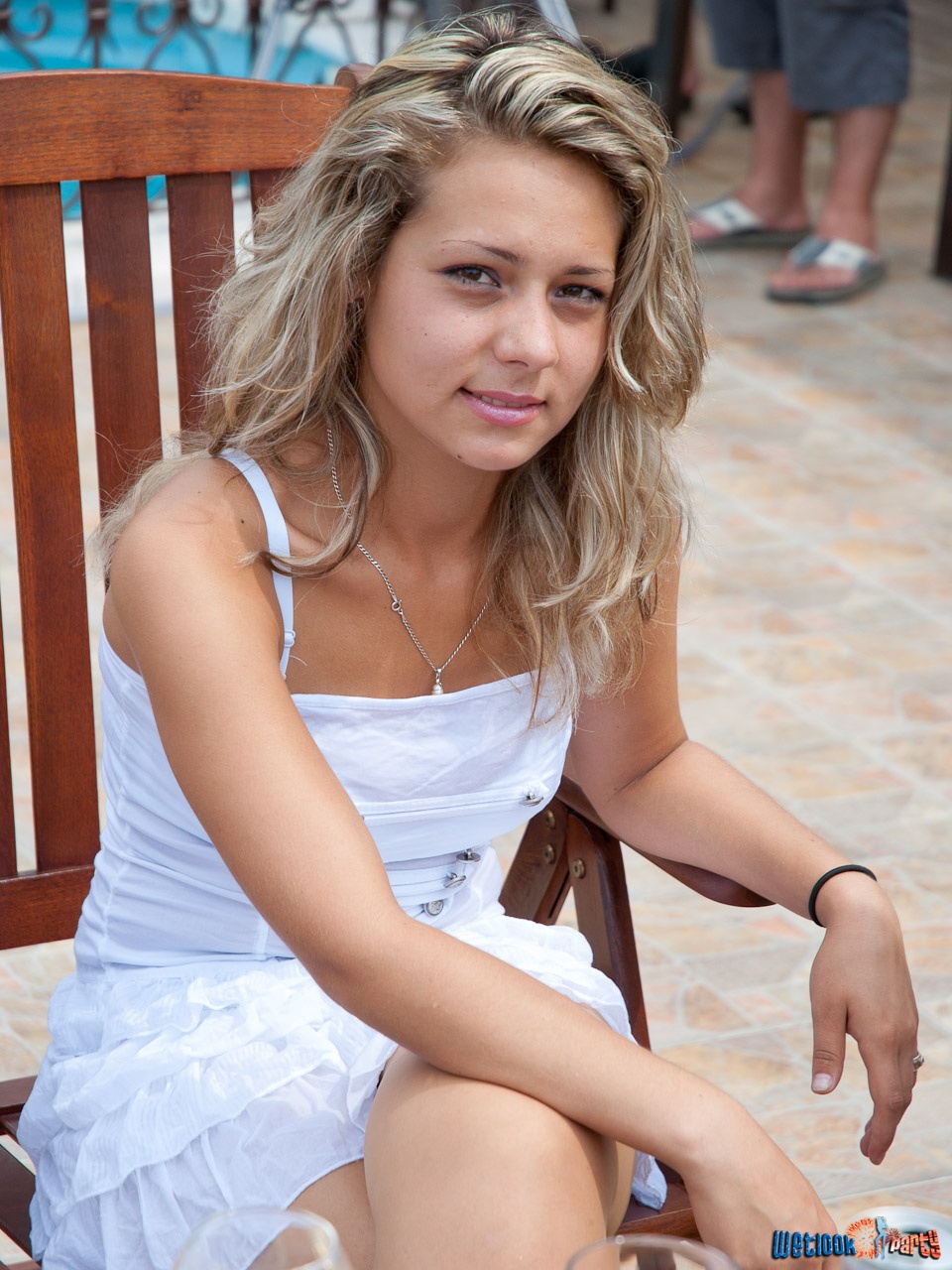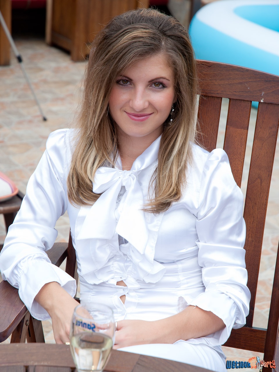 In this pool party, we have 15 girls (we added two girls to the usual number) and our only request when we called them was to be dressed in white.