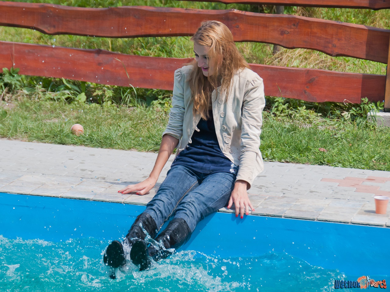 In the second part Maya, Diana and Sonja are heading into the pool and there they play for a while before Mihaela joins them. Later on, Simonne, Ildiko, and Lucia get into the pool and they were splashing Panna and Reka B, who both got pretty soaked after the water fight, and to make sure that their jeans became thoroughly soaked and not just splashed, they got into the pool almost waist deep.